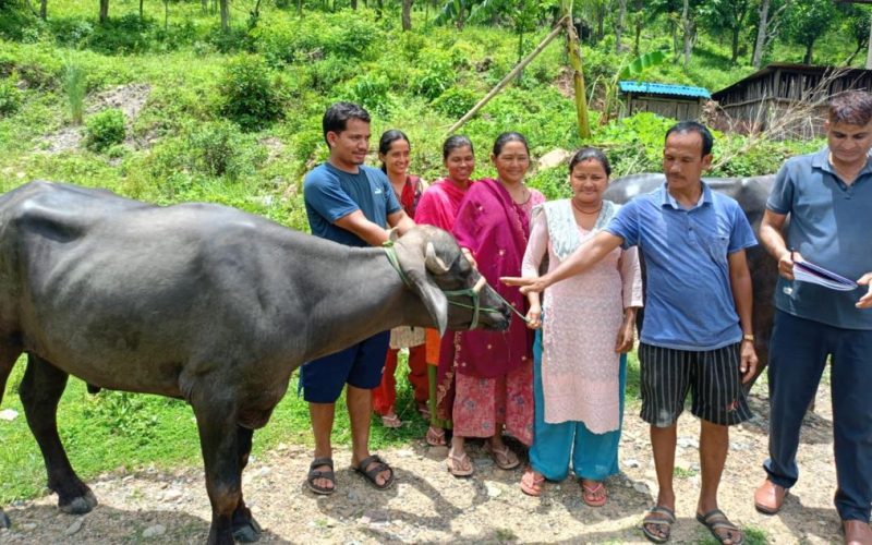 गाउँपालिका अध्यक्ष तुल्सीराम पुनमगरको उपस्थितिमा आज स्वामीघाटस्थित जनहित कृषक समूह र गोठीवनमा रहेको कस्तुरी कृषक समूहलाई भारतको हरियाणाबाट ल्याइएका मुर्रा राँगो हस्तान्तरण गरियो। अध्यक्ष पुनमगरले राँगोलाई कृषक समूहको जिम्मा लगाउनुभएको थियो।