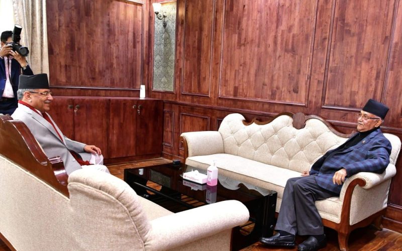 काठमाडौँ । प्रधानमन्त्री पुष्पकमल दाहाल ‘प्रचण्ड’ र नेकपा ९एमाले०का अध्यक्ष केपी शर्मा ओलीबीच आज भेटवार्ता भएको छ ।